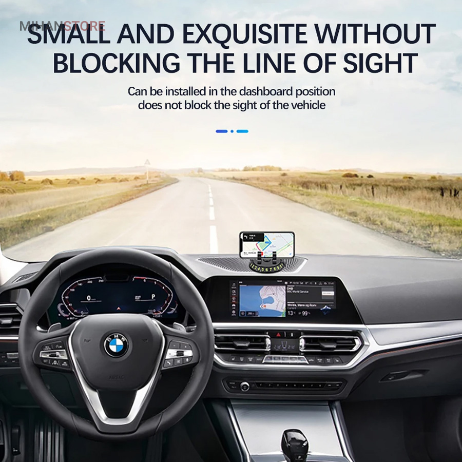 نگهدارنده گوشی قابل چرخش است، می توانید زاویه مناسب را تنظیم کنید و دید خوبی را برای گوشی های موبایل فراهم کنید.این هولدر موبایل خلاقانه دارای ابعاد 8.5×4 سانتی متر است. از این هولدر می توانید به عنوان یک پارک فون نیز استفاده کرده و شماره موبایل خود را با استفاده از برچسبی که داخل محصول قرار دارد بر روی هولدر بچسبانید تا اگر شخصی بابت جابه جا کردن خودرو به شما نیاز داشت بتواند با شما تماس حاصل کند، همچنین می توانید با یک چرخش ساده شماره موبایل خود را پنهان کنید و فقط از هولدر استفاده کنید. اعداد بزرگ و واضح هستند و در شب به وضوح قابل مشاهده هستند. چرخ دنده های چرخان می توانند شماره موبایل را پنهان کنند، از حریم خصوصی به خوبی محافظت کنند، از طریق شیشه قابل مشاهده باشند. این هولدر ضد لغزش و ضد ضربه بوده و امکان تماشای ویدیو، تماس با تلفن همراه پایدار و بادوام را برای شما به ارمغان میاورد.